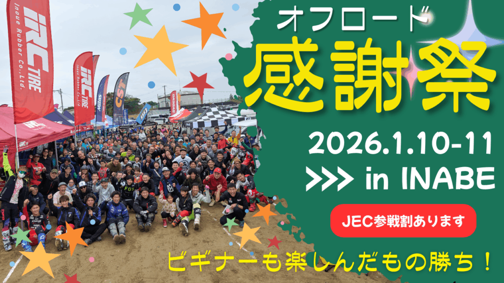 皆様への感謝の気持ちをこめ、JECに参戦された皆様、ご協賛いただいた各社様、各カテゴリーに参戦された皆様、オフロードビギナーの皆様が楽しめるイベントをご用意いたしました。